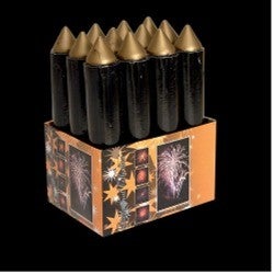 Raketbatterij met gillende crackling raketjes die achter elkaar de lucht in gaan.